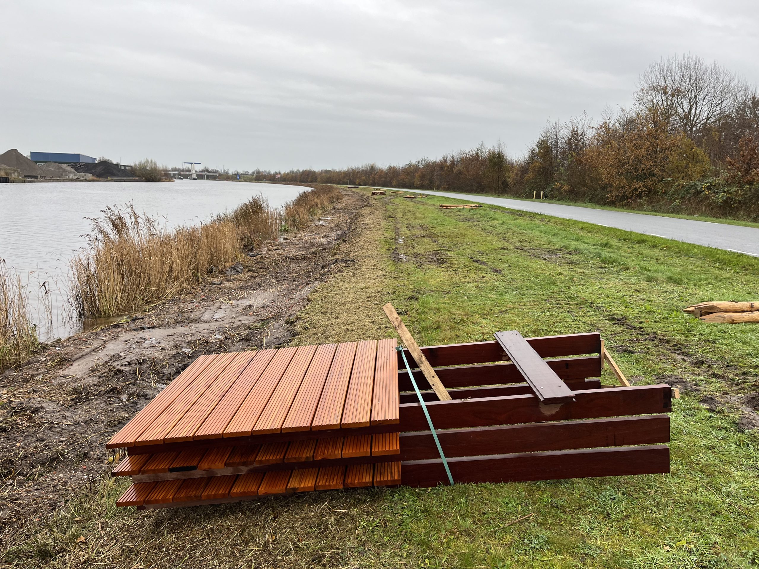 De geplande aanleg van 40 nieuwe vissteigers is inmiddels van start gegaan en alles loopt volgens plan. Aannemer WMR Rinsumageest heeft de palen van de steigers geplaatst en op sommige plekken is ook het platform ook al op de palen geplaatst. Gerben heeft afgelopen maandag de regenjas aangetrokken om wat foto’s te maken. Hieronder volgt een korte sfeerimpressie.