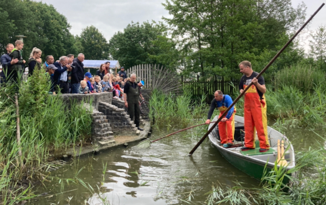 Vandaag 25 juni heeft Sportvisserij Fryslân in samenwerking met twee beroepsvissers van de Friese Bond van Binnenvissers de vijver afgevist. Eerst is er enkele keren een zegen door de vijver getrokken, vervolgens is daarna de rietkraag elektrisch afgevist.
