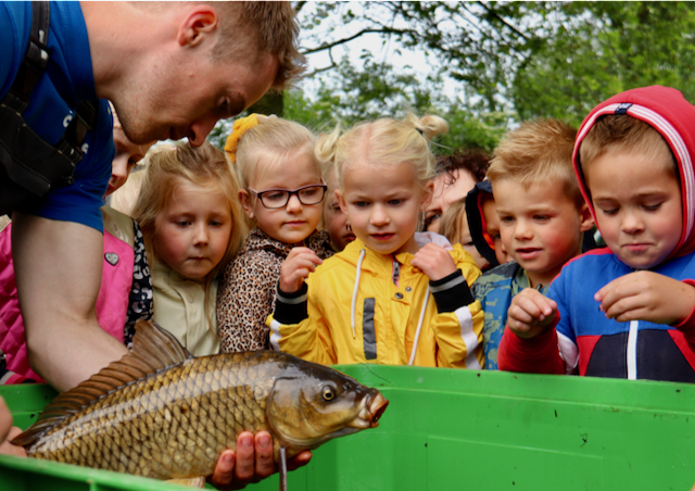Tijdens de ‘uitvisserij’ was er grote belangstelling van omwonenden en heel veel schooljeugd van de naburige basisscholen. Het was prachtig om te zien hoe enthousiast en geïnteresseerd de kinderen reageerden op de grote vissen. Voor hen was het een prachtige biologieles in de openlucht.