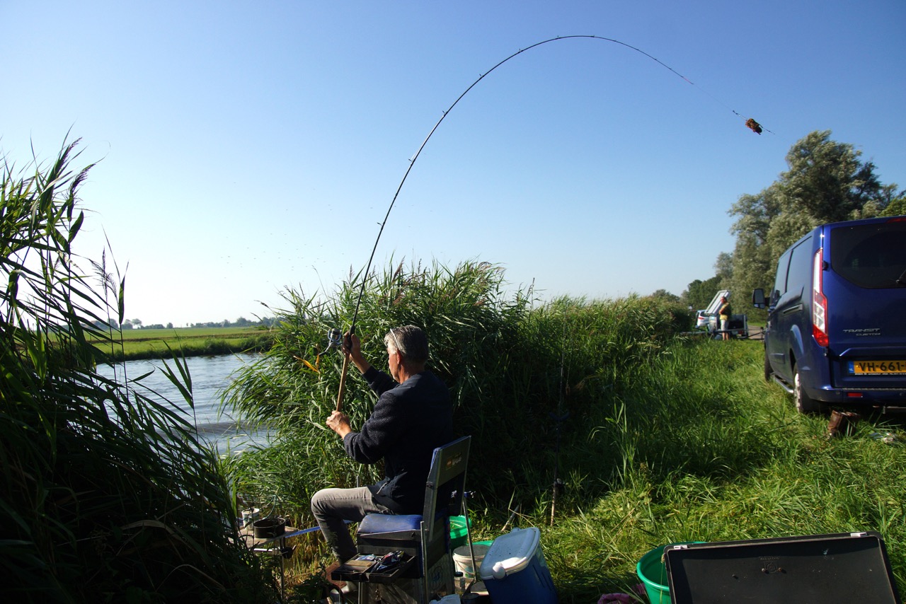 Na de loting aan het water is er een goede wedstrijd onder bijna tropische omstandigheden gevist aan de Workumer Trekvaart.