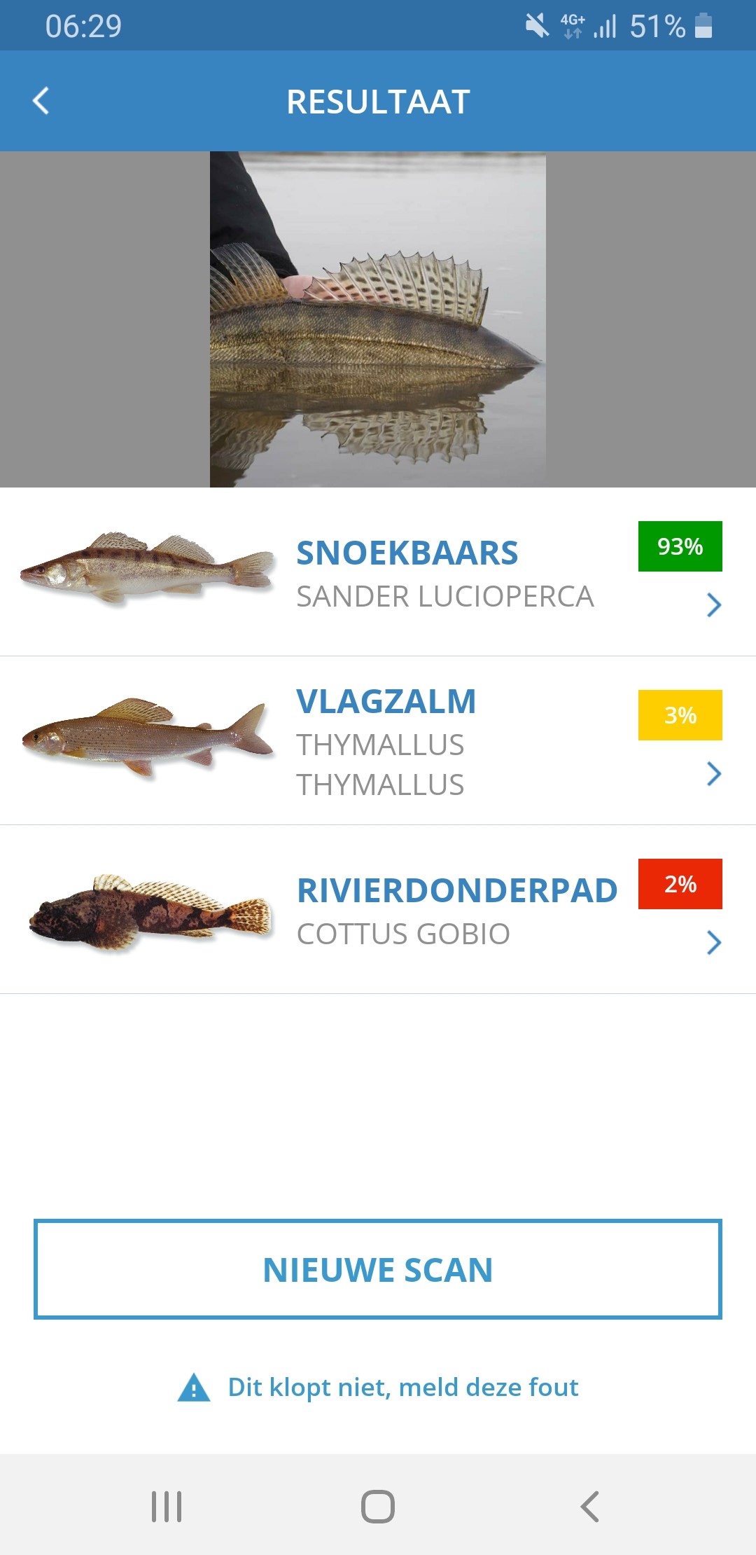 De scanner analyseert een foto met vis van je camera of uit de galerij van je smartphone, waarna hij direct en automatisch de juiste soort herkent.