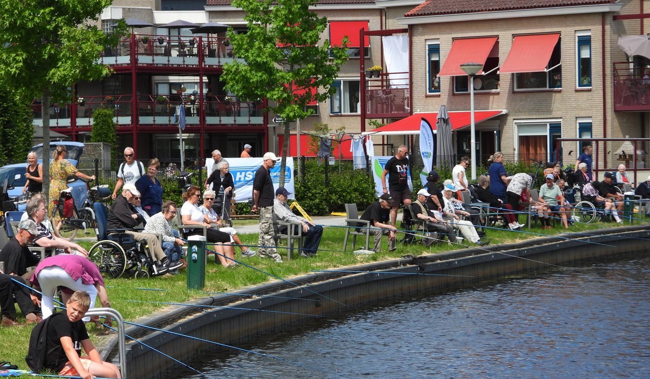 De vrijwilligers van de hengelsportvereniging zorgden voor hengels, aas, voer en technische begeleiding tijdens het vissen. De locatie zelf zorgde voor verdere begeleiding, zoals het begeleiden van de deelnemers naar de waterkant, het verstrekken van stoelen en het regelen van hapjes, drankjes en zorgbegeleiding. En zo kon het vissen beginnen, met maar liefst 25 enthousiaste bewoners.