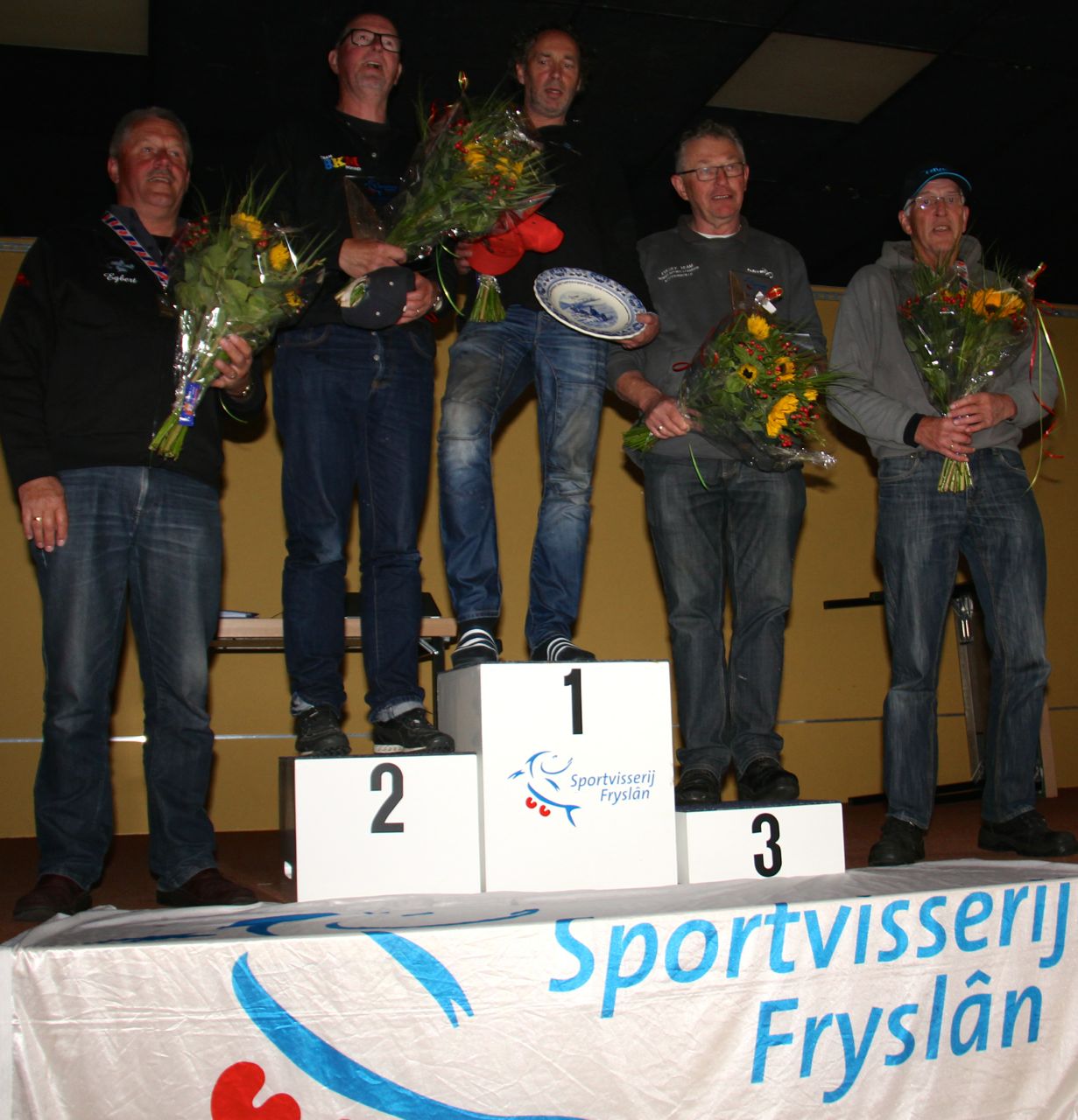 Vlnr de 55+ Kampioenen: Egbert vd Kamp, Geert vd Meer, Ko Jakobs, Sake vd Meer en Lieuwe Pander.