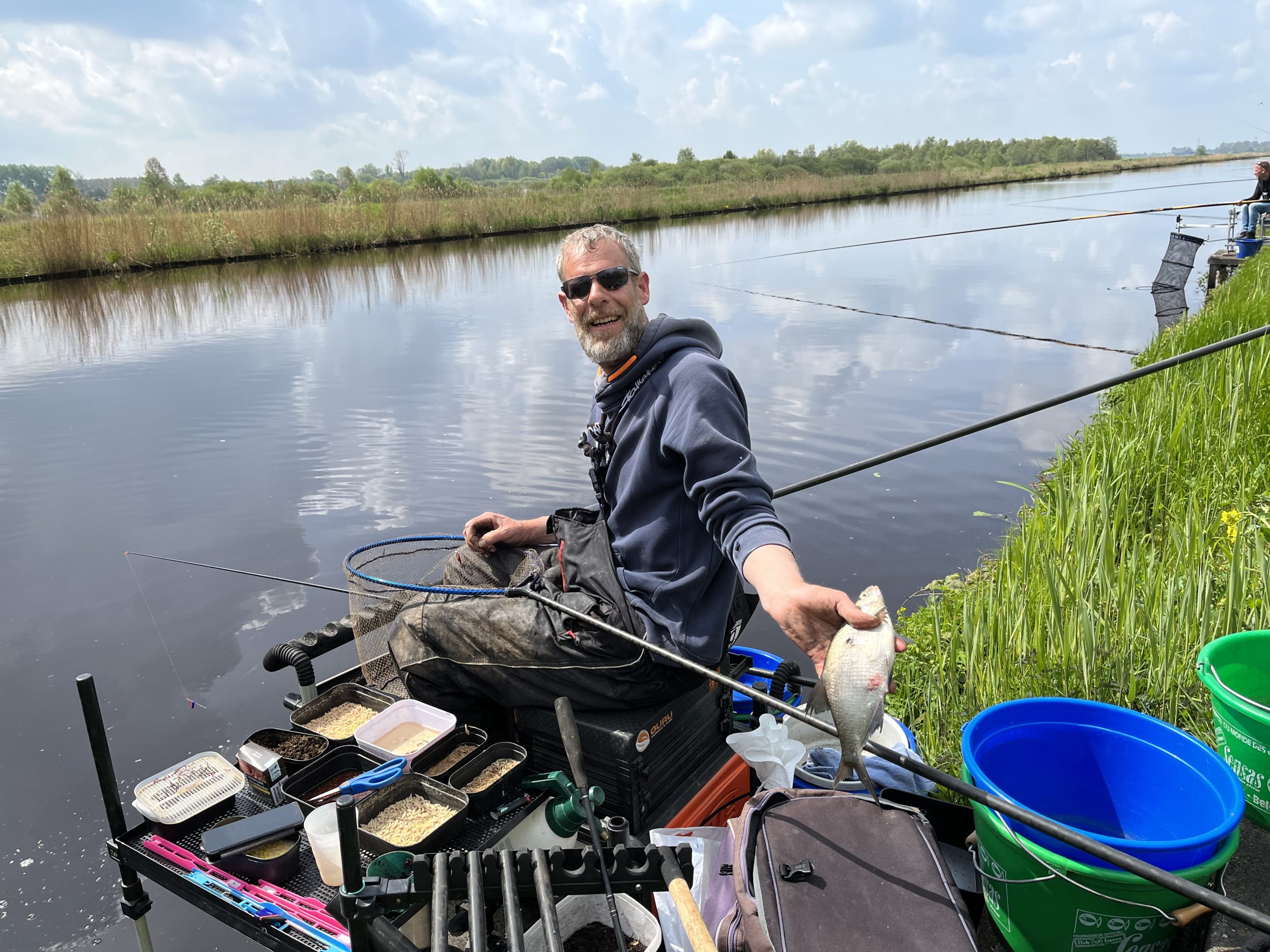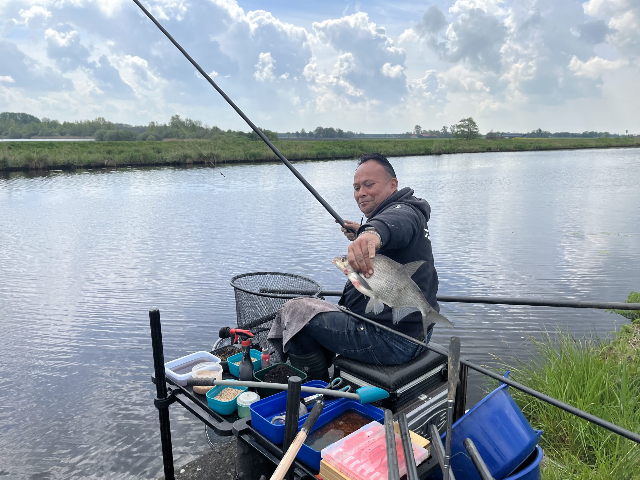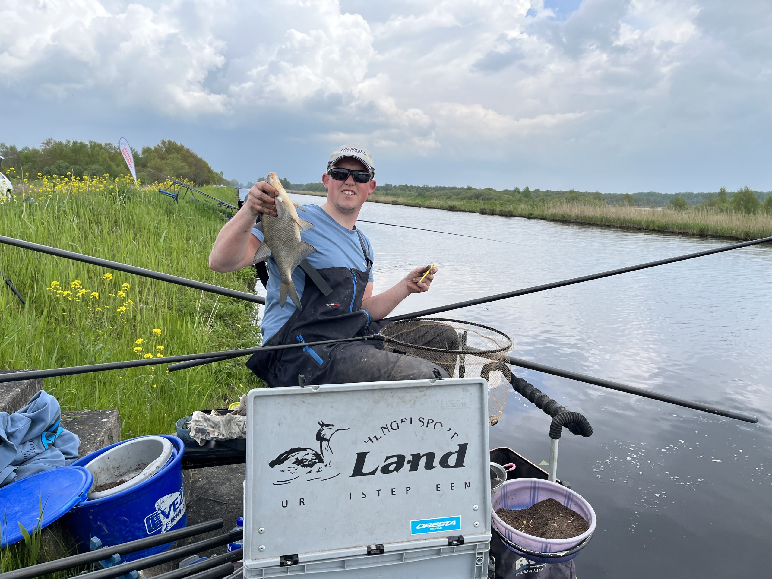 Dit was het beeld tijdens de Friese Kampioenschappen wedstrijdvissen op zaterdag 06 mei langs de Hooivaart bij de Deelen.