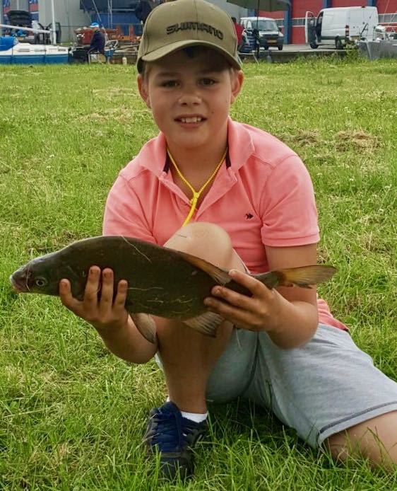 Uiteindelijk was Niels de Groot, HSV Voorwaarts Drachten de meest ‘betoefte’ sportvisser in cat. t/m 15 jaar met 3039 gram vis. Hij bleef daarbij Christiaan Dijkstra met 1532 gram ruim voor. Niels wist vlak voor het eindsignaal nog een mooie brasem te vangen (zie foto).