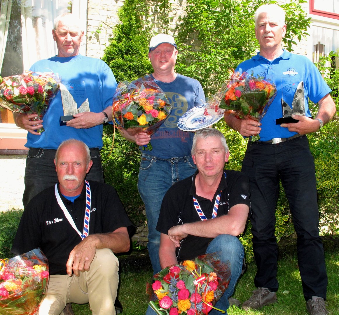 Op de foto ziet u de prijswinnaars: vlnr staand Menno Hoogsteen (2, HSV de Rietvoorn, Kootstertille), Henk Hoeksma (1, HSV Leeuwarden), Rein Pal (3, HSV Heerenveen),