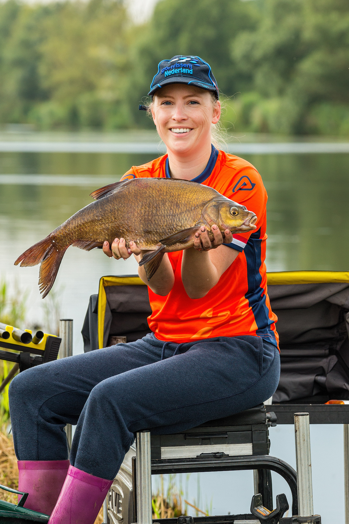 Op dag twee hield Floor haar sterke lijn vast door opnieuw uiterst secuur te vissen. “Vanaf het begin ving ik alweer vis en zo zat ik meteen weer lekker in de wedstrijd”, blikt ze terug. “Zelfs toen de regen later met bakken uit de hemel viel, bleef ik maar vangen.” Met een dagtotaal van 2,1 kilo vis werd Floor tweede in haar vak, waarmee ze de koppositie in het individuele klassement vasthield en haar eerste gouden plak ooit op een WK veroverde. Nederland zakte als team naar de vierde plaats nét buiten het eremetaal en opnieuw vlak achter Italië. Winnaar Polen en nummer twee België eindigden gelijk in punten, maar Polen ving in totaal net iets meer gewicht aan vis.