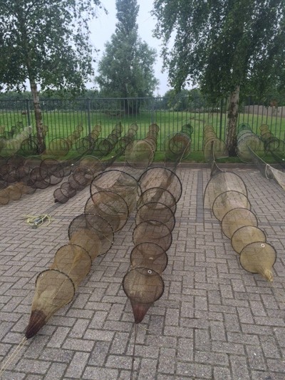 Tijdens een gezamenlijke controle op grond van de visserijwetgeving op het IJsselmeer werden de 28 palingfuiken aangetroffen.