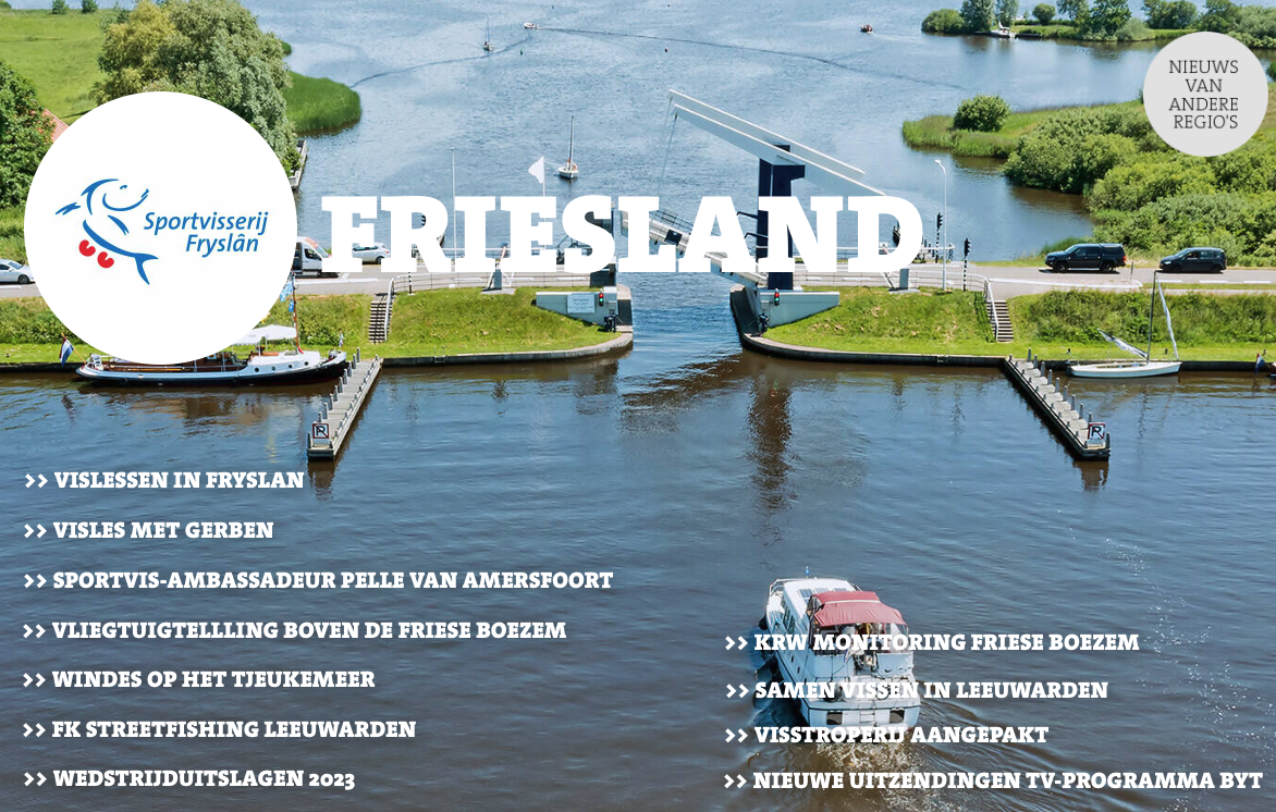 In deze digitale editie is ook het Sportvisserij Fryslân regio-nieuws opgenomen met o.a. Jeugdvissen in Gorredijk en Heerenveen, de KRW monitoring, hernieuwde kennismaking met Sportvisambassadeur Pelle van Amersfoort, Vissen met ouderen in Leeuwarden, prachtige luchtfoto’s van de Friese Boezem en info over BYT.