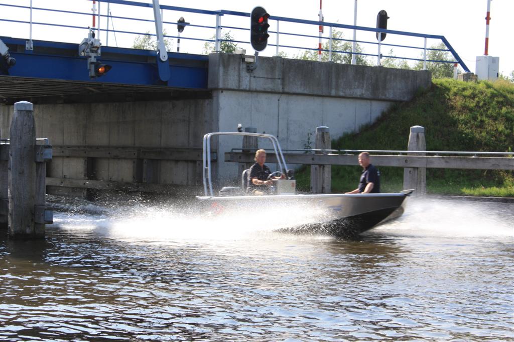 Onder belangstelling van enkele genodigden en de pers kreeg dhr Nol Sweep, voorzitter van Sportvisserij Nederland, de sleutel overhandigd van Rob Adolfs (Adolfs Boat Business, Schingen) en Tom Jorna (Tomasco, Stiens) de beide fabrikanten van de boot. In één handeling gaf dhr Sweep de sleutels door aan Rinnert Procee, portefeuillehouder Controle en Handhaving van HSF Fryslan, die vol enthousiasme direct met de boot naar de trailerhelling vertrok om aldaar de eerste zeer geslaagde proefvaart te maken (zie foto hieronder).