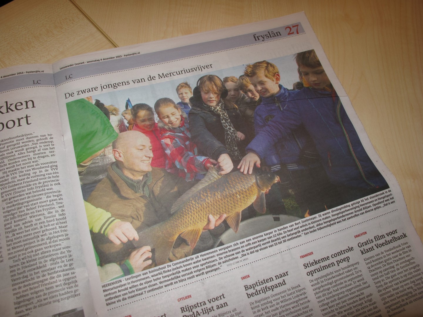 In de afbeelding hiernaast ziet u het artikel dat in de Leeuwarder Courant staat dd 4-12-13. Hierbij een kleine correctie hierop; op de foto staat Gerwin Gerlach van Sportvisserij Nederland en het kleine visje waar over gesproken wordt in het artikel is geen Getje maar een Vetje.