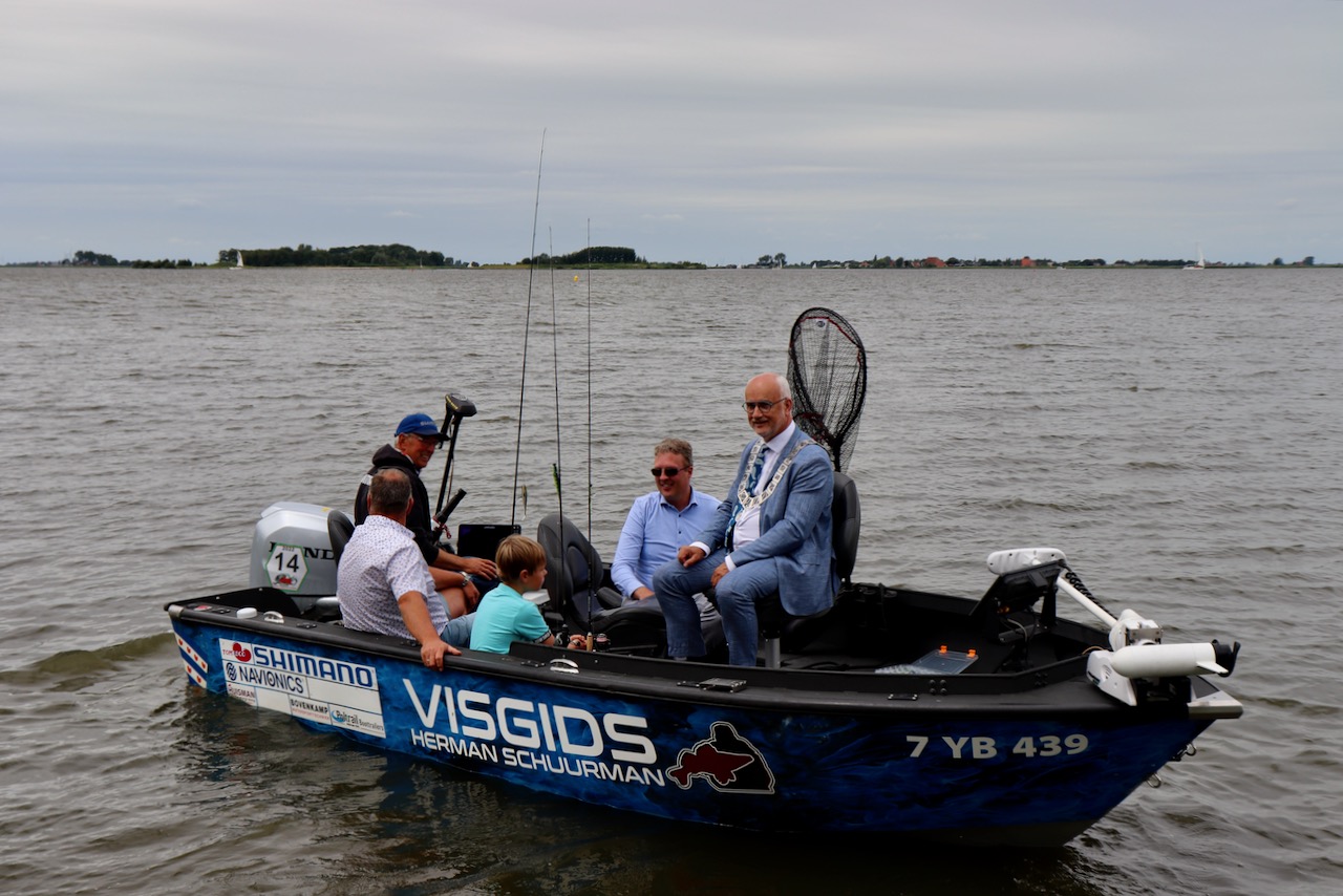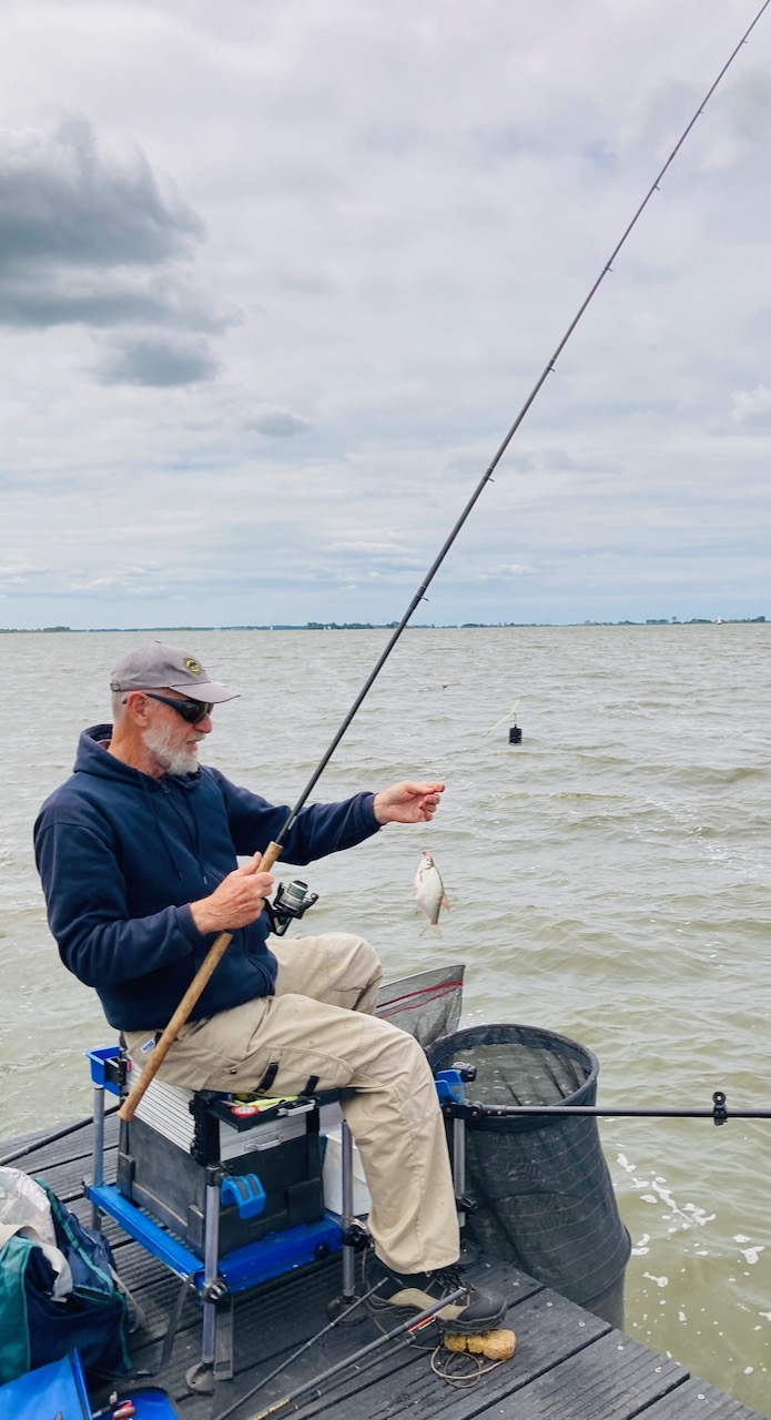 Enkele genodigden ondernamen nog de korte wandeling naar de vissteigers, alwaar Menno reeds de eerste vissen ving (zie foto hieronder).
