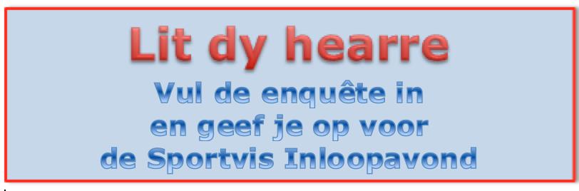 Daarnaast organiseert Sportvisserij Fryslân op dinsdag 23 februari 2016 in Hotel De Heidehof in Heerenveen een speciale inloopavond voor alle Friese sportvissers. Inloop vanaf 19.30 uur Aanvang programma 20 uur.