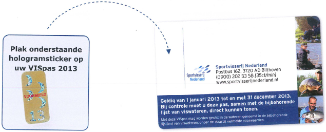 De voorlopige toestemming is één maand geldig. De definitieve toestemming(en) in de vorm van een hologramsticker ontvang je binnen één maand automatisch thuis en plak je op je VISpas (zie afbeeldig hieronder).