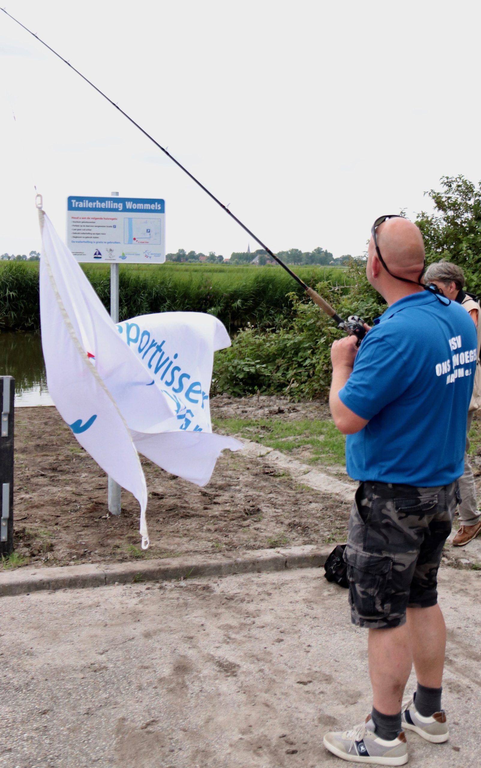 Tijdens de officiële ingebruikname hield Portefeuillehouder Sportvisserijvoorzieningen, Sjors Hempenius, onder het genot van een bakje koffie en een gebakje een woord over het tot stand komen van deze nieuwe trailerhelling. Onder andere de medefinanciering van de in het gebied liggende hengelsportverenigingen en de prettige samenwerking met gemeente Súdwest Fryslân kwamen hierin naar voren. Vervolgens werd de trailerhelling officieel in gebruik genomen door Andries Wiersma, bestuurslid van HSV Ons Genoegen. Andries “viste” met zijn hengel de Sportvisserij Fryslân vlag van het informatiebord af waarna hij zijn visboot te water liet.
