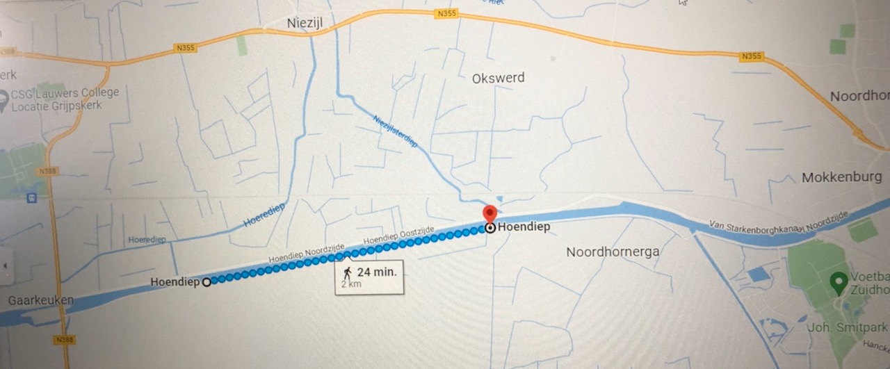 De wedstrijdleiding heeft er derhalve voor gekozen om ook het gedeelte van het van Starckenborgkanaal, zuidzijde, net voorbij Gaarkeuken tot aan Zuidhorn, in te zetten voor de feedervissers. De straat langs dit parcours heet Hoendiep. Zie kaartje hieronder.