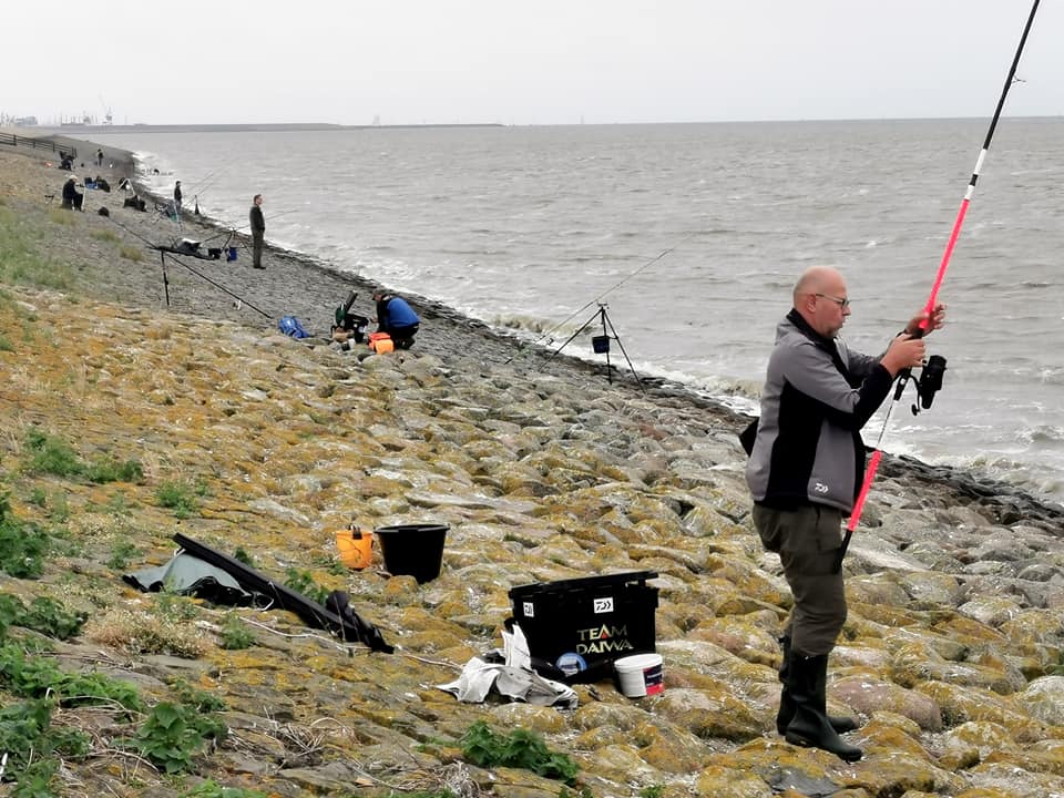 De wedstrijd wordt gevist vanaf de zeedijk te Roptazijl.