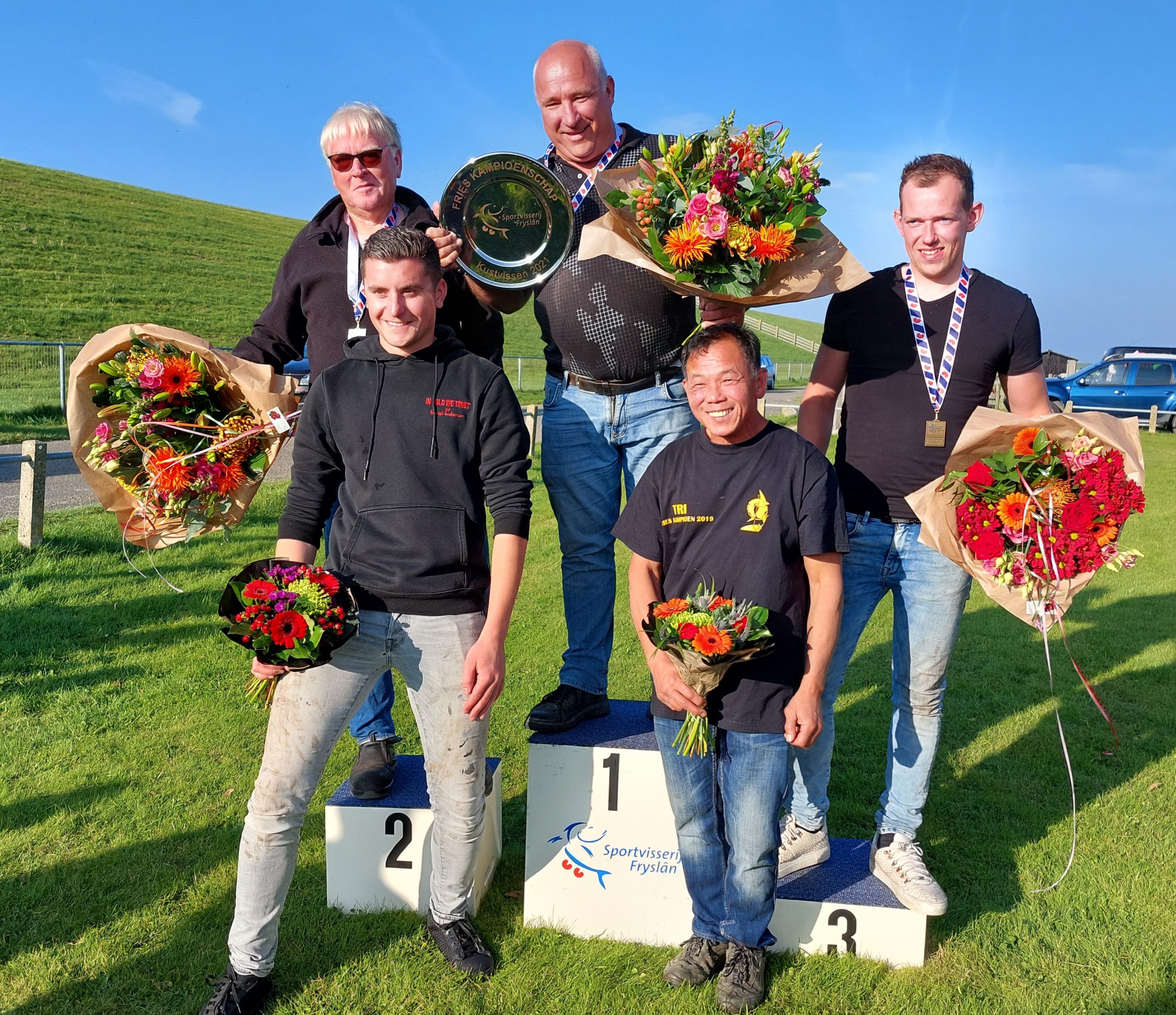 Met maar liefst 539 centimeter en 19 vissen was Marco van Pagee uit Yerseke de winnaar van het Frysk Kampioenschap Kustvissen 2021. Marco mag zich zelf, in ieder geval een jaar lang Frysk Kampioen Kustvissen noemen. Naast het unieke zilveren kampioensbord die nummer 1 ontving, kregen de prijswinnaars een fraai bos bloemen, een heerlijk vleespakket, een medaille en de Fryske Visatlas uitgereikt.