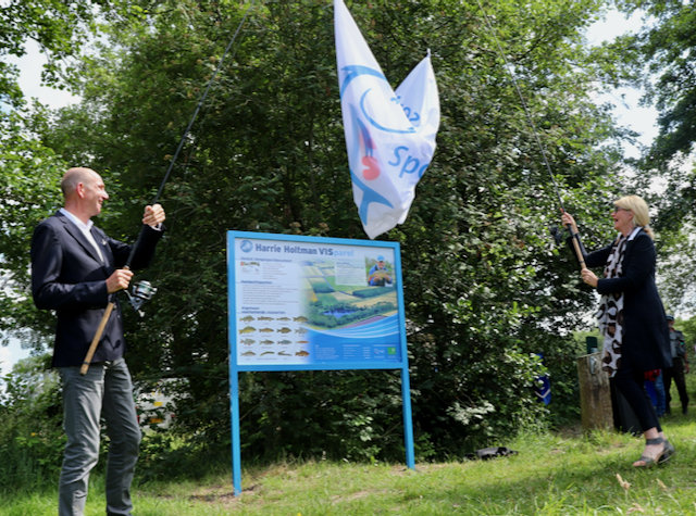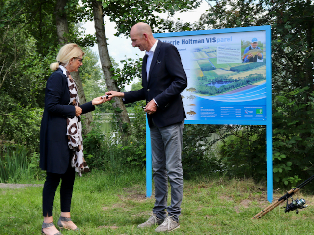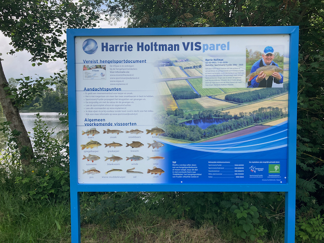 Na dit gedenkwaardig moment mocht Marian het nieuwe informatiebord (zie foto) onthullen waarop Harrie, de naamgever van de visparel, staat afgebeeld.