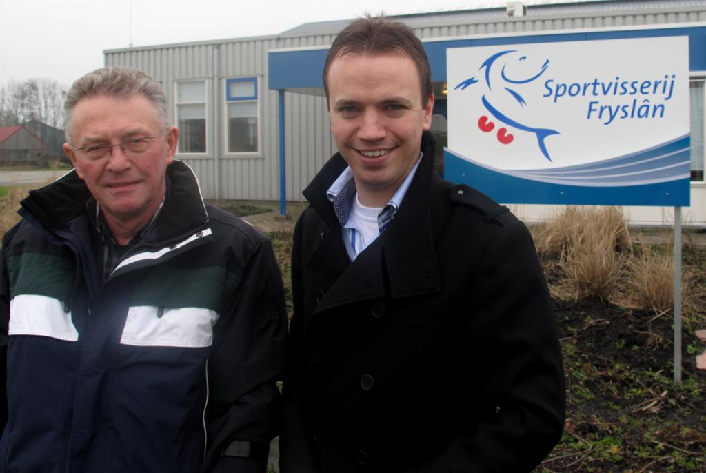 DD 28-2-11: Voorzitter Sake vd Meer (links) naast Sander de Rouwe (CDA Tweede Kamerlid) voor het SV Fryslan kantoor te Grou.
