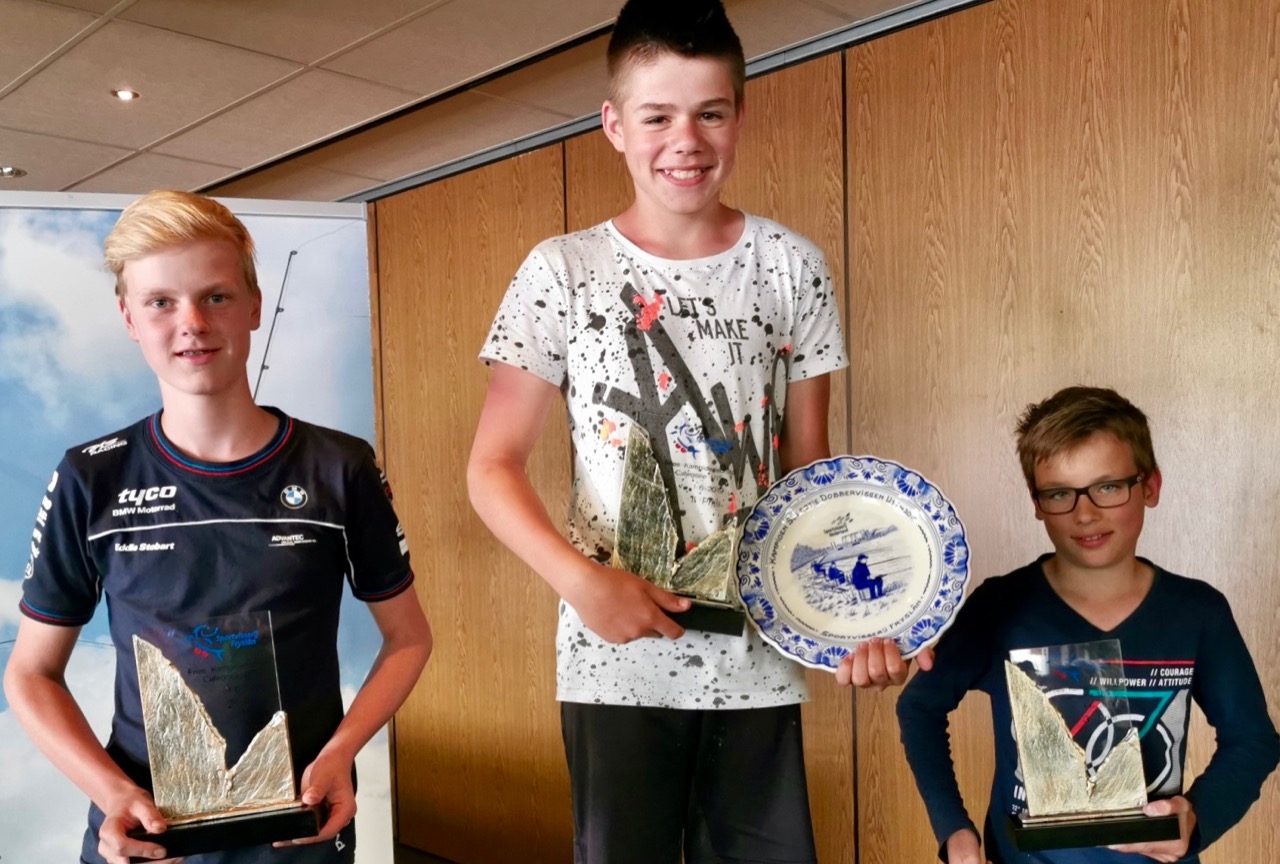 De Winnaars van Categorie U20 vlnr: Iwan Praamstra, kampioen Christiaan Dijkstra, Ruben Elsinga.