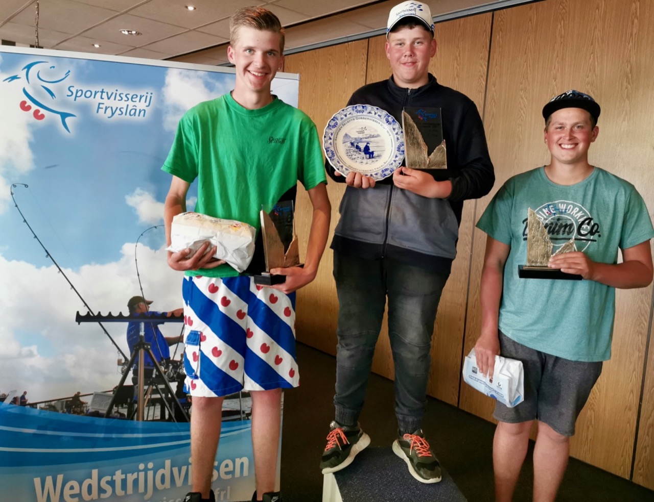 Alle drie kampioenen kregen een prachtige Kampioensbord uitgereikt door de wedstrijdleider Klaas Mozes van Sportvisserij Fryslân.