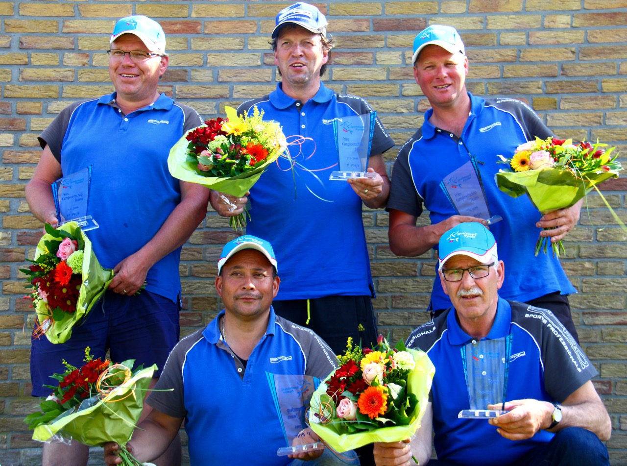 Hier nogmaals hetFries Kampioens Team op de foto:achter vlnr; Klaas Mozes, Johan Koning, Fokke Visser en voor Dave Martens en Rein Pal)
