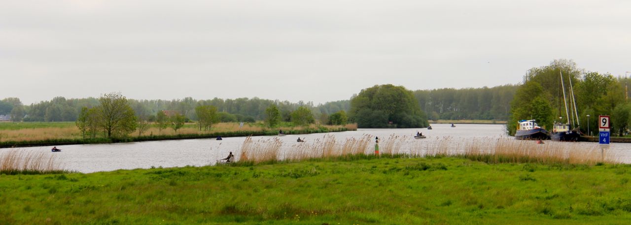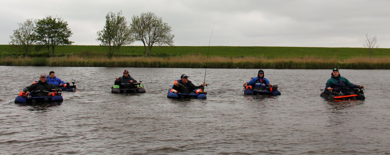Ondertussen is het bijna traditie dat op deze eerste dag de NKS wedstrijd gevist wordt op het Lauwersmeer. Op mijn tocht naar Esonstad trof ik bij Dokkumer Nieuwe Zijlen de bekende Noordelijke Belly Boat Boys en kreeg ik verslag van de eerste resultaten. De mannen waren niet ontevreden en vingen elk hun visje(s). Na enkele fraaie foto’s van het stel met op de achtergrond de andere visboten reed ik verder naar de NKS locatie; het Lauwersmeer.