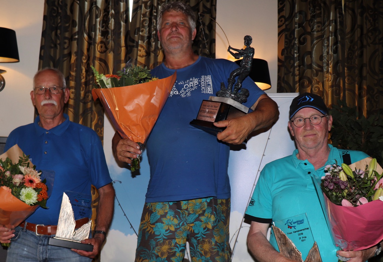 Foto hieronder: De kampioenen 55+; vlnr Harm Bekkema (3), Jan vd Weide (1), Menno Hoogsteen(2),
