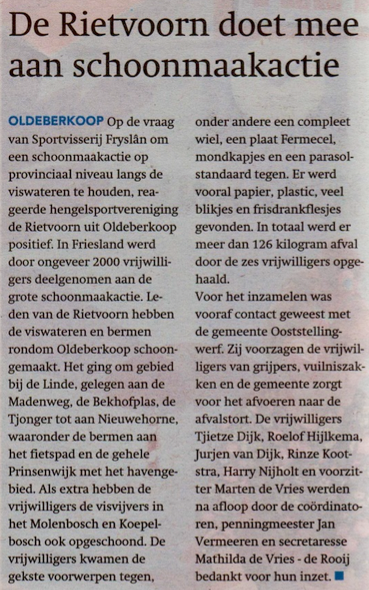 Van HSV de Rietvoorn uit Oldeberkoop kregen we een mooi krantenartikel uit de lokale krant opgestuurd met daarin een verslag van de schoonmaakactiviteiten. Lees het artikel hieronder.