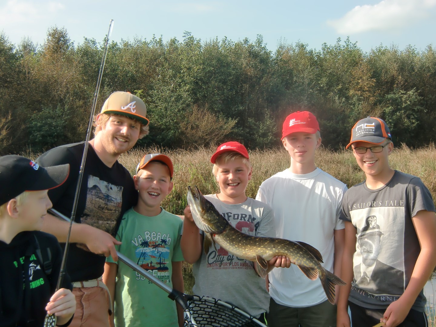 Welke stappen moet je als visser zetten om een vast gelopen stuk kunstaas te redden zonder dat je het risico loopt dat je je hengel of molen vernield? Wat doet een snoek met je als zij aan de lijn zit? Of beter gezegd; wat moet je met de snoek doen als zij aan de lijn zit? Zulke zaken leren de kinderen alleen maar door het te ervaren. De jeugd was deze dag erg nieuwsgierig en stelde veel vragen. Dat is ook voor de begeleiders het leukst! “Meneer, dit kunstaas heb ik… hoe moet ik daar mee vissen? En vervolgens? Welke kan ik nu het beste gebruiken?”