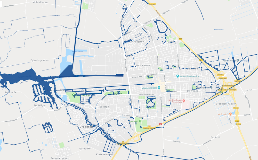 Hieronder zie je het betreffende kaartje van de viswateren rondom en in Drachten.