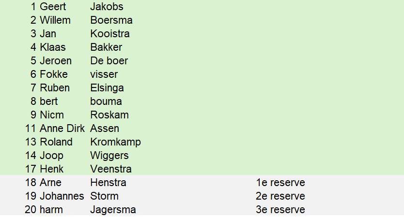 Naar aanleiding van de aangegeven voorkeur deel te willen nemen aan het ONK Dobbervissen komen de volgende mensen in aanmerking zich aan te melden voor net ONK