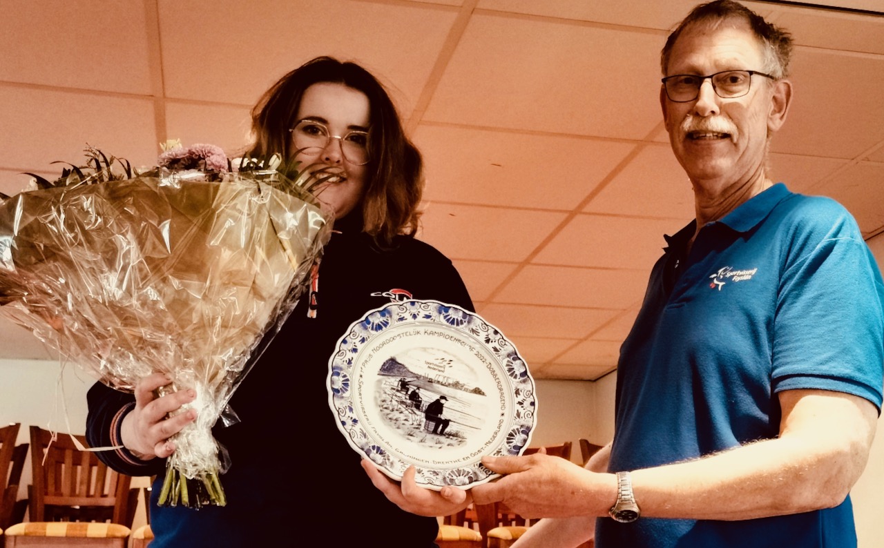 Tevens werd van de gelegenheid gebruik gemaakt om Susanne Dijkstra, de winnares van het NOK 2022, het NOK kampioensbord uit te reiken. Op de foto ontvangt zij het bord van wedstrijdleider Rene Seefat.