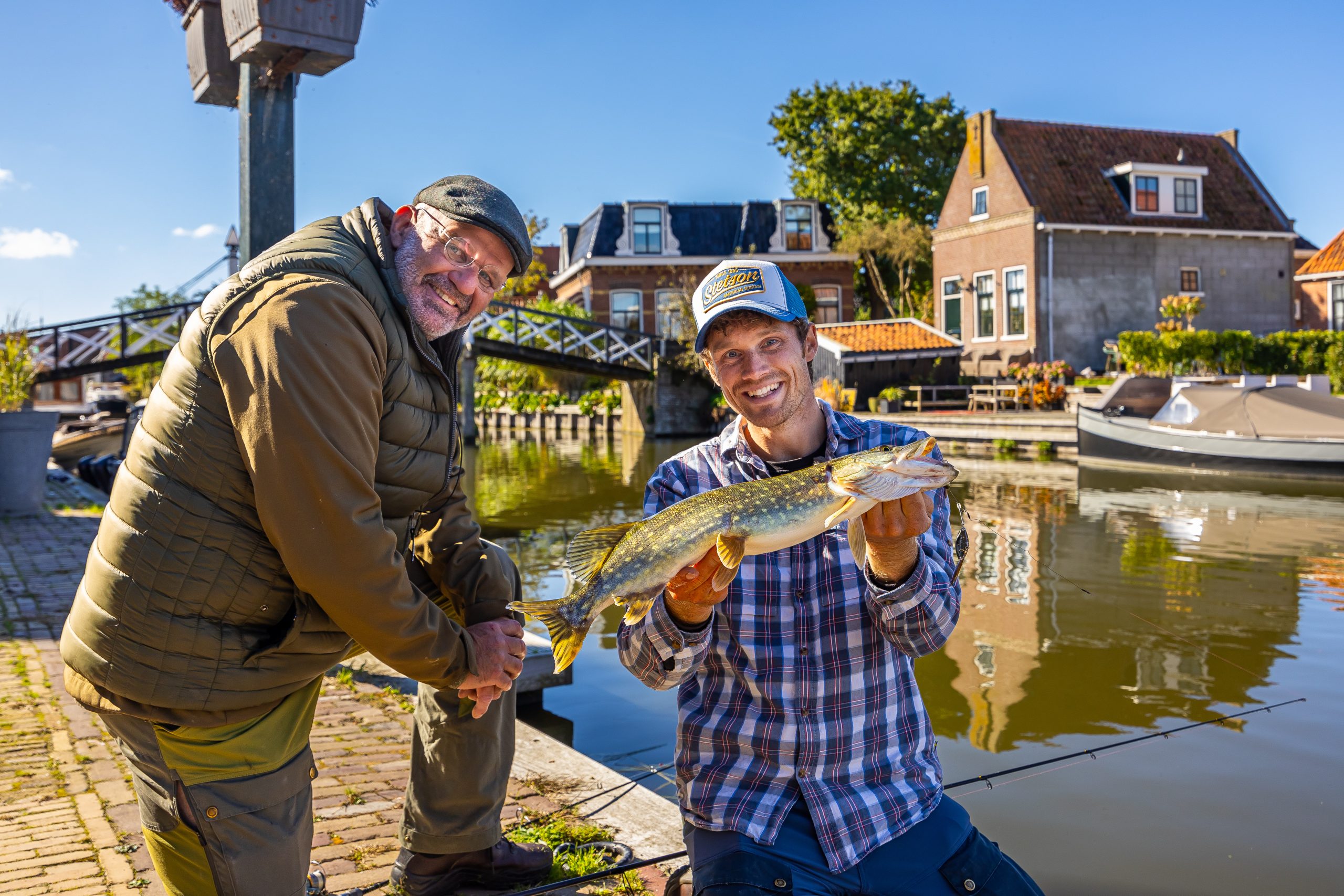 Ook leggen ze nog even aan in Hindeloopen en proberen ze vanaf de kant ook nog een snoek te vangen. Hier nuttigen ze ook nog even bakje koffie met appeltaart.