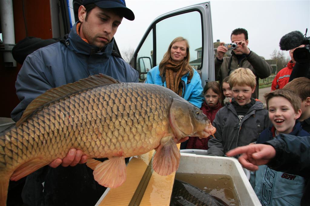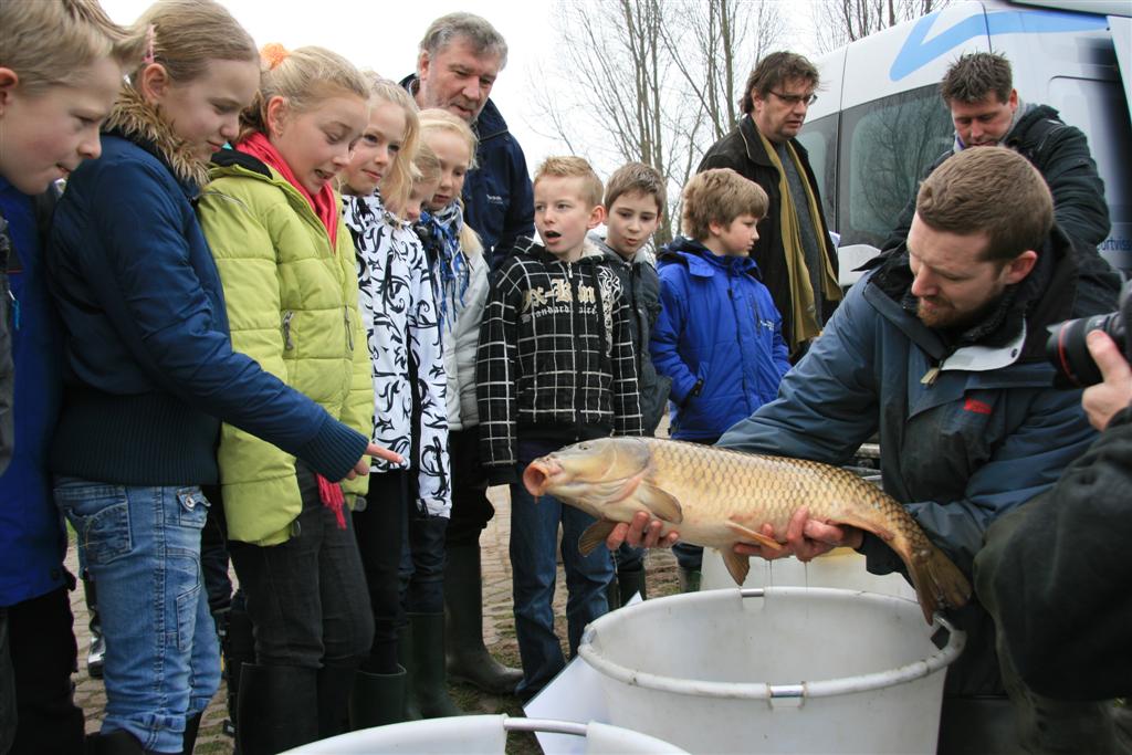 Speciaal voor deze gelegenheid was groep 5-6 van de St Radboudschool uit Jirnsum aanwezig. Een dergelijke vismonitoring is een prachtige gelegenheid om de jeugd te laten zien wat er in onze wateren leeft. Gezien de enthousiaste reactie van de kinderen waren ze erg onder de indruk van de grote karpers.