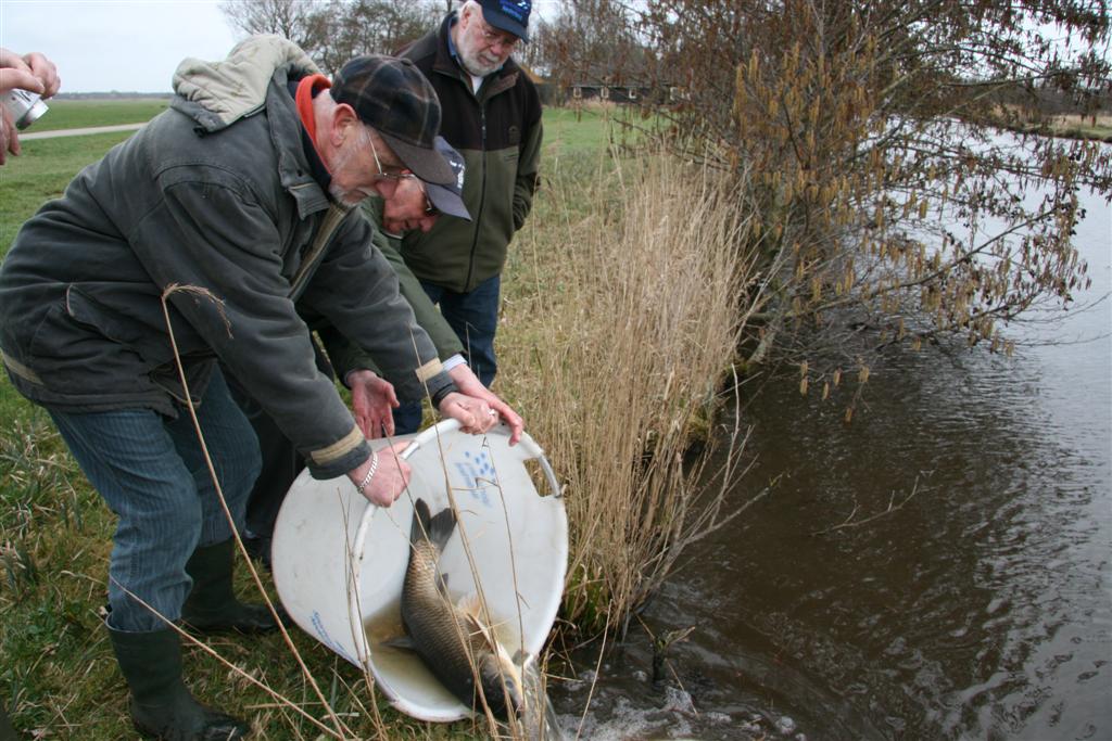Het bestuur van hsv Idaarderadeel is nauw betrokken bij het gehele onderzoek en plaatste symbolisch nog enkele graskarpers terug.