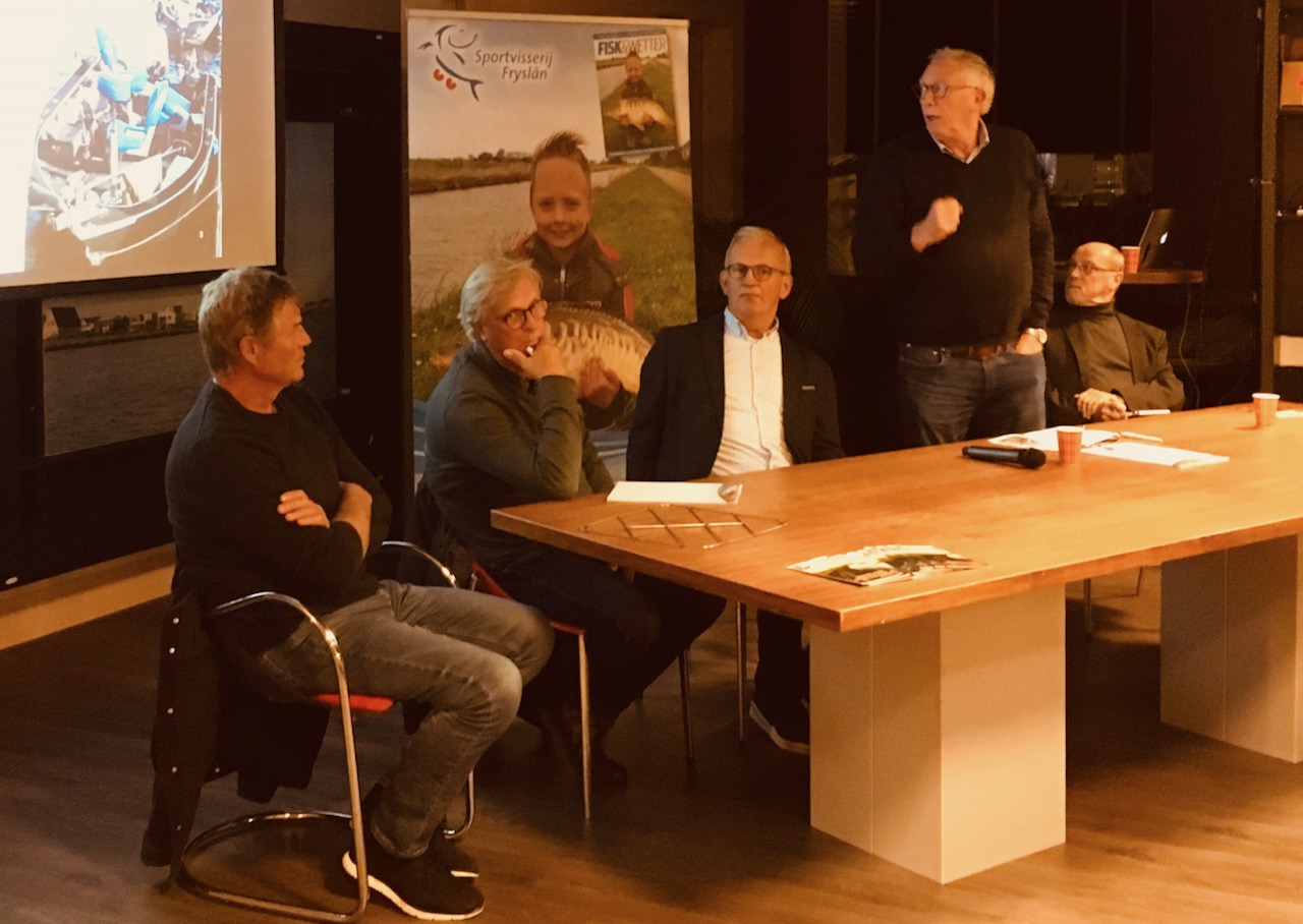 Er werd gestart met een beschrijving door Harrie Holtman (voorzitter Sportvisserij Fryslan), over de verdeling van visrechten in Friesland, de geschiedenis van de splitsing van visrechten, de samenwerking van de sport- en de beroepsvissers, de huidige situatie en over de gemaakte afspraken met beroepsvisser Ale de Jager.