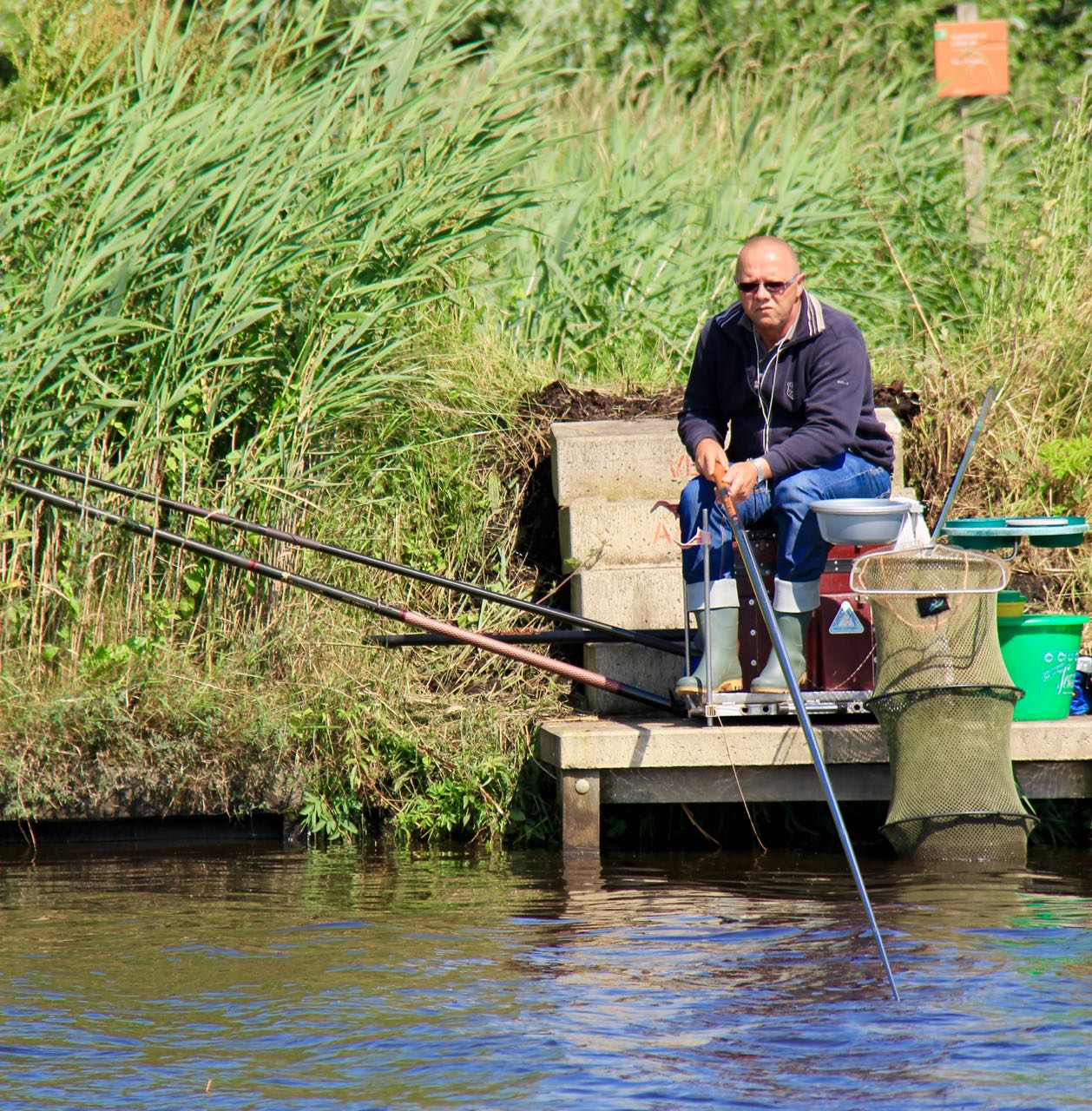 Op de foto hiernaast ziet u Piet Alberts tijdens een wedstrijd vanaf een steiger in de Heafeart.