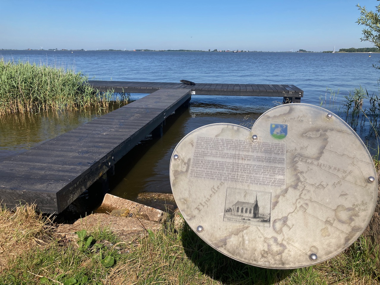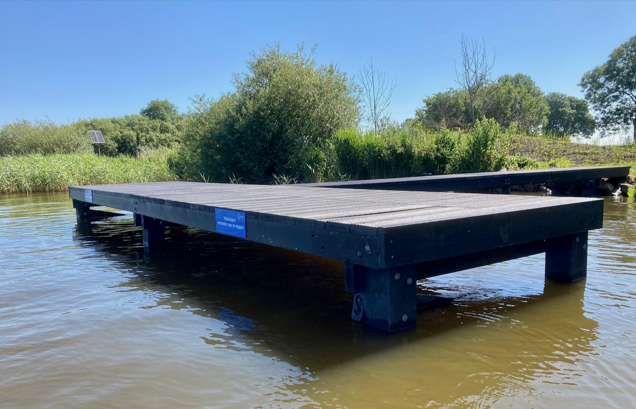 Voor de vissteigers moet men enkele meter lopen, maar vervolgens heeft men ook een ‘daalders’ plakje met een fantastisch uitzicht over de Fluessen een van de prachtige meren in de Friese Boezem. Voor de vissteiger staat direct 1.5 mtr water en er is dus volop kans op visvangst.