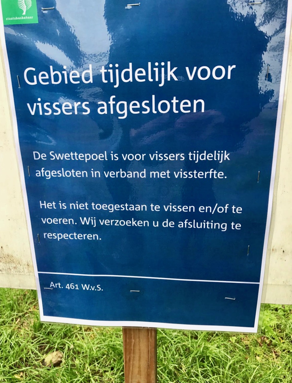 Naar verwachting heeft het gehele visbestand een zware klap gekregen en is er ondertussen een visverbod ingesteld (zie foto).