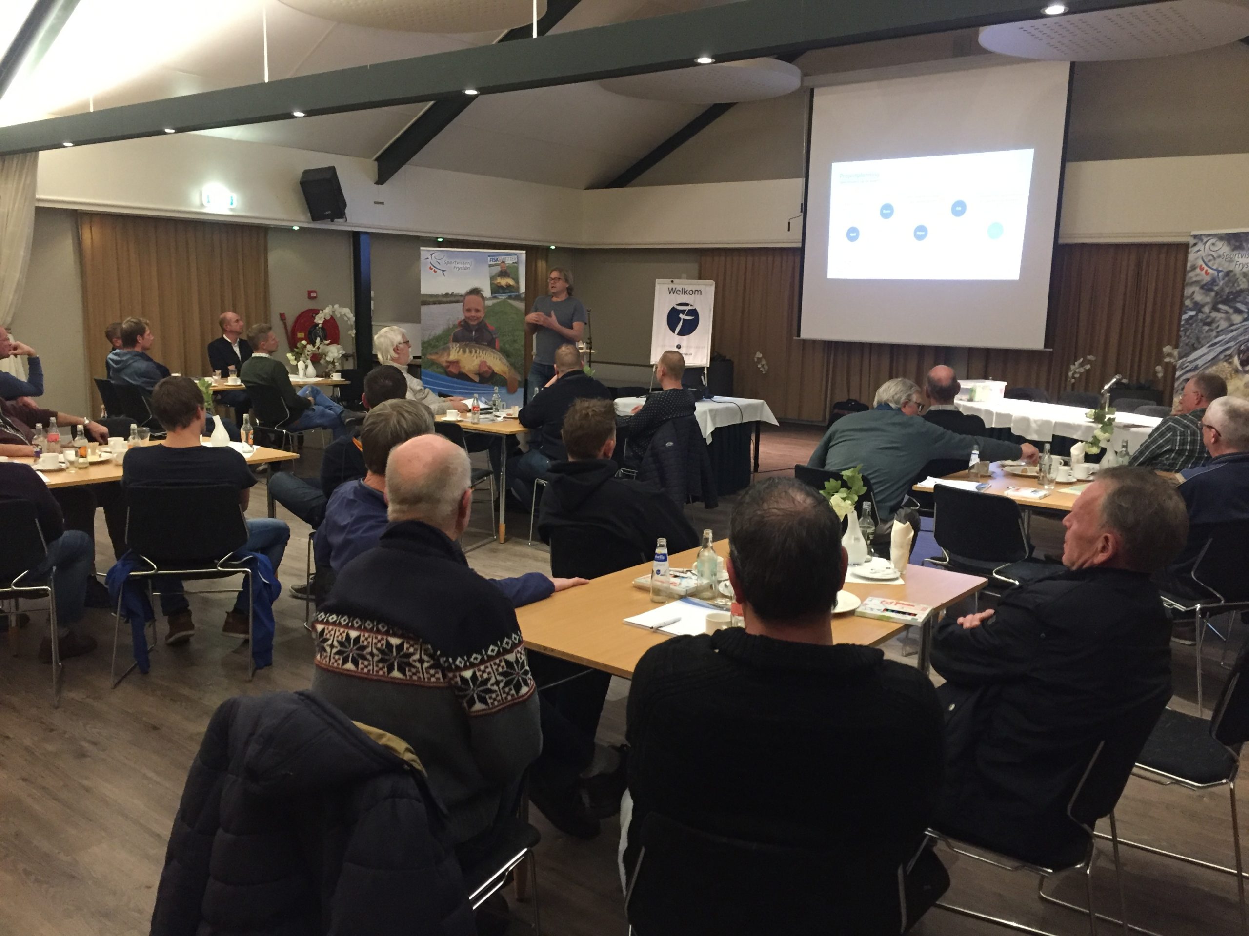De Sportvisserij op de Kaart vervolg bijeenkomst was een zeer praktische avond waarbij er actief aan het intekenen is geweest. Door middel van plattegronden en verschillende kleuren stiften zijn de gewenste maatregelen die getroffen moeten worden ter bevordering van de viswateren in kaart gebracht. De maatregelen bestonden vooral uit het maaien van stekken, beheren van waterplanten, aanleg vissteigers en het uitzetten van karper.