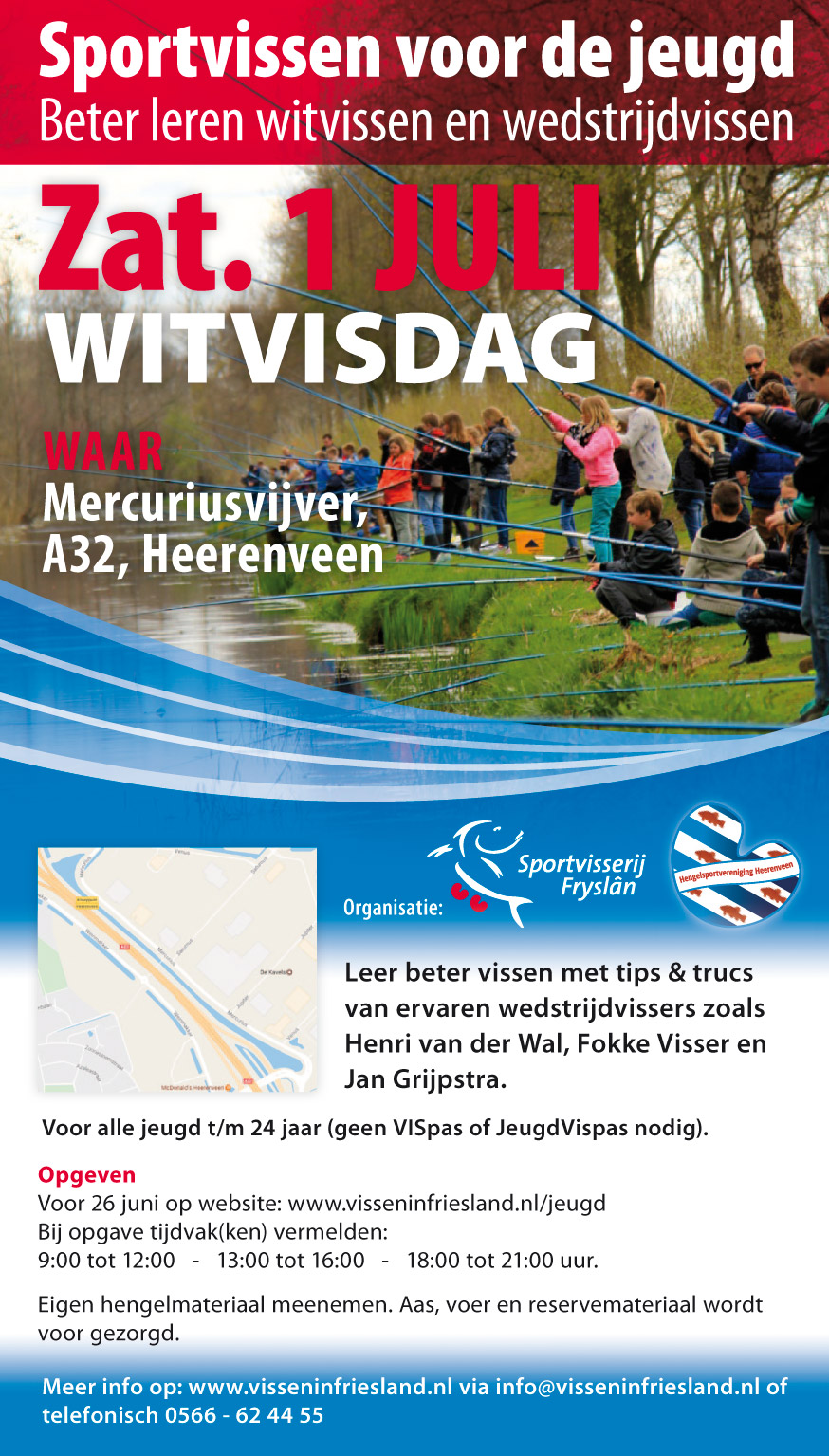 Als je vissen leuk vindt of je misschien nog wat handige vistips kunt gebruiken meld je dan aan voor de Witvisdag op 1 juli in Heerenveen.