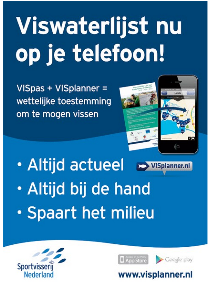 Sinds enkele jaren is ook de VISplanner – in combinatie met de VISpas – wettelijk geldig als toestemming om in de wateren die in de Gezamenlijke Lijst van Nederlandse Viswateren staan, te mogen vissen.